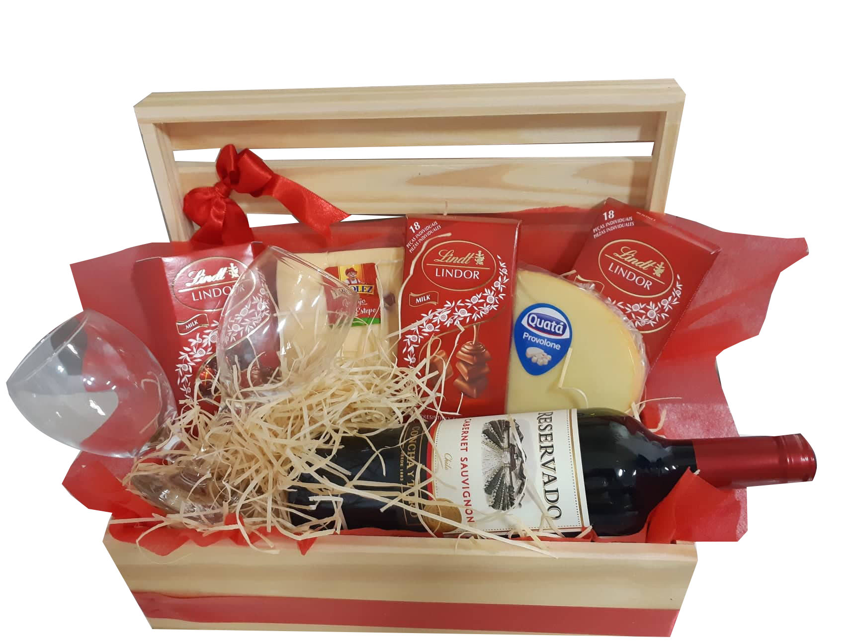 CESTAS DE QUEIJOS E VINHO COM LINDT