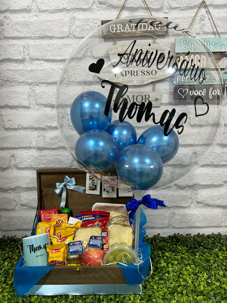 CESTA DE ANIVERSÁRIO MAJESTIC   BALÃO BUBBLE MEDIO JUNTOS ATÉ O FIM