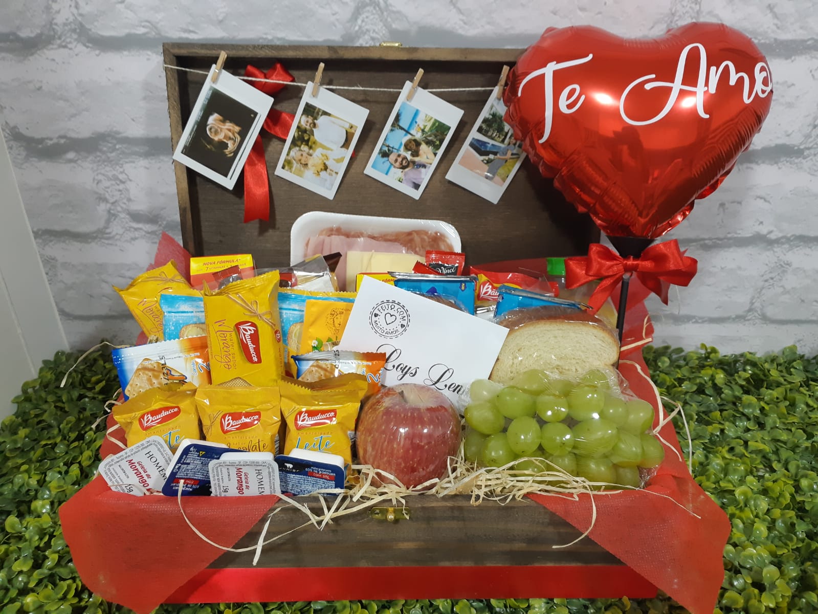 CESTA PARA 02 PESSOAS CORAÇÃO CHEIO DE ALEGRIA   BALÃO METALIZADO GRANDE CORAÇÃO EU TE AMO