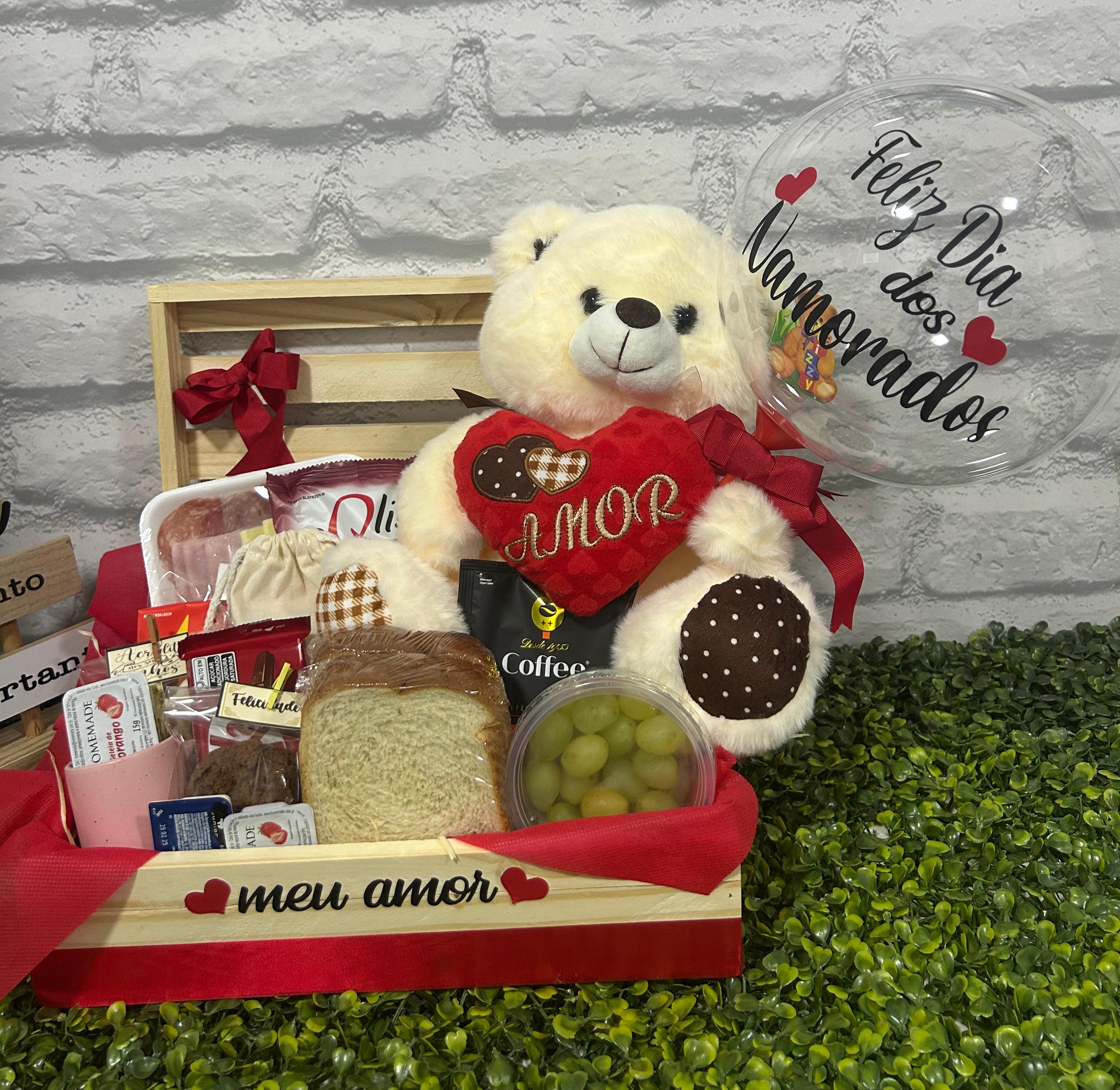 CESTA ROMANTICA AMOR DE MIM   CESTA DE CAFÉ DA MANHÃ ADORO VC COM BALÃO BUBBLE PEQUENO