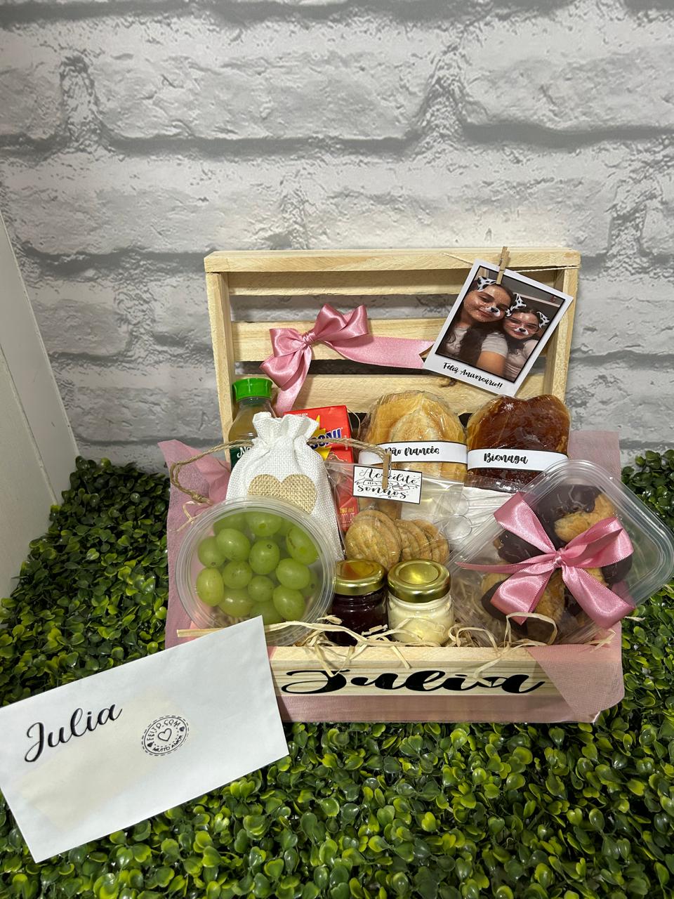 CESTA DE CAFÉ DA MANHÃ NEW YORK COM FOTO NO ROSA   CESTA DE ANIVERSÁRIO ACREDITE NOS SEUS SONHOS