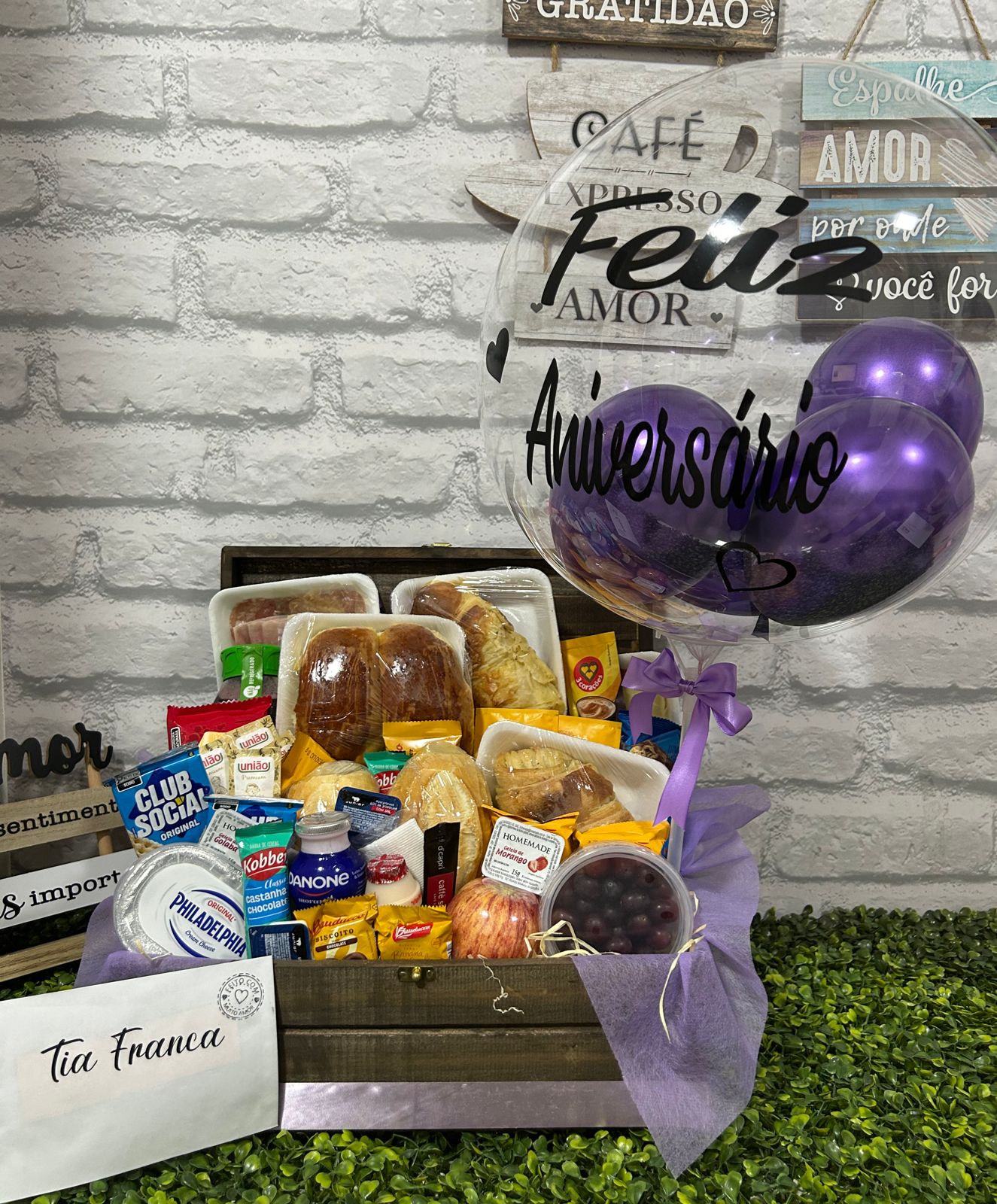 CESTA DE CAFÉ DA MANHÃ MELHORAS no lilás