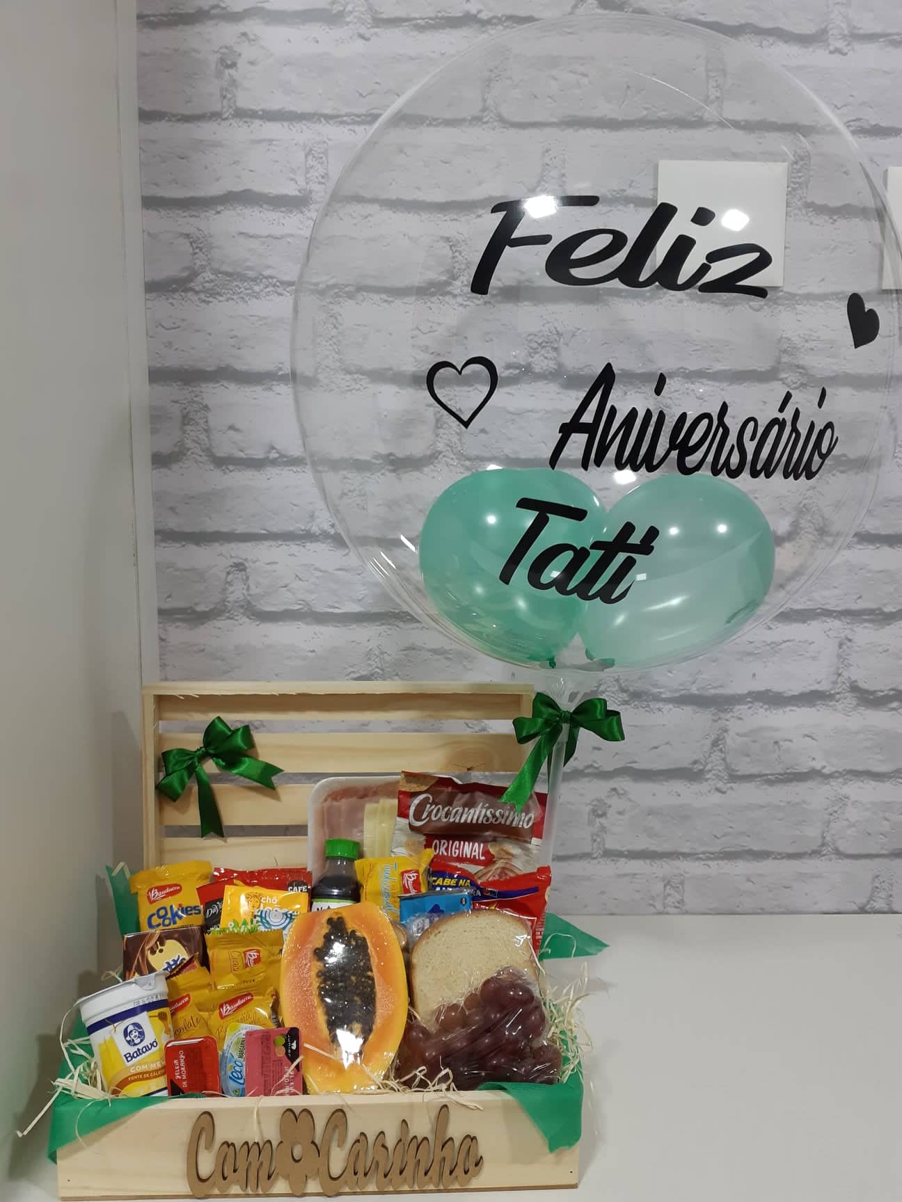 CESTA DE CAFÉ DA MANHÃ SEU NIVER NO VERDE COM NOME PERSONALIZADO