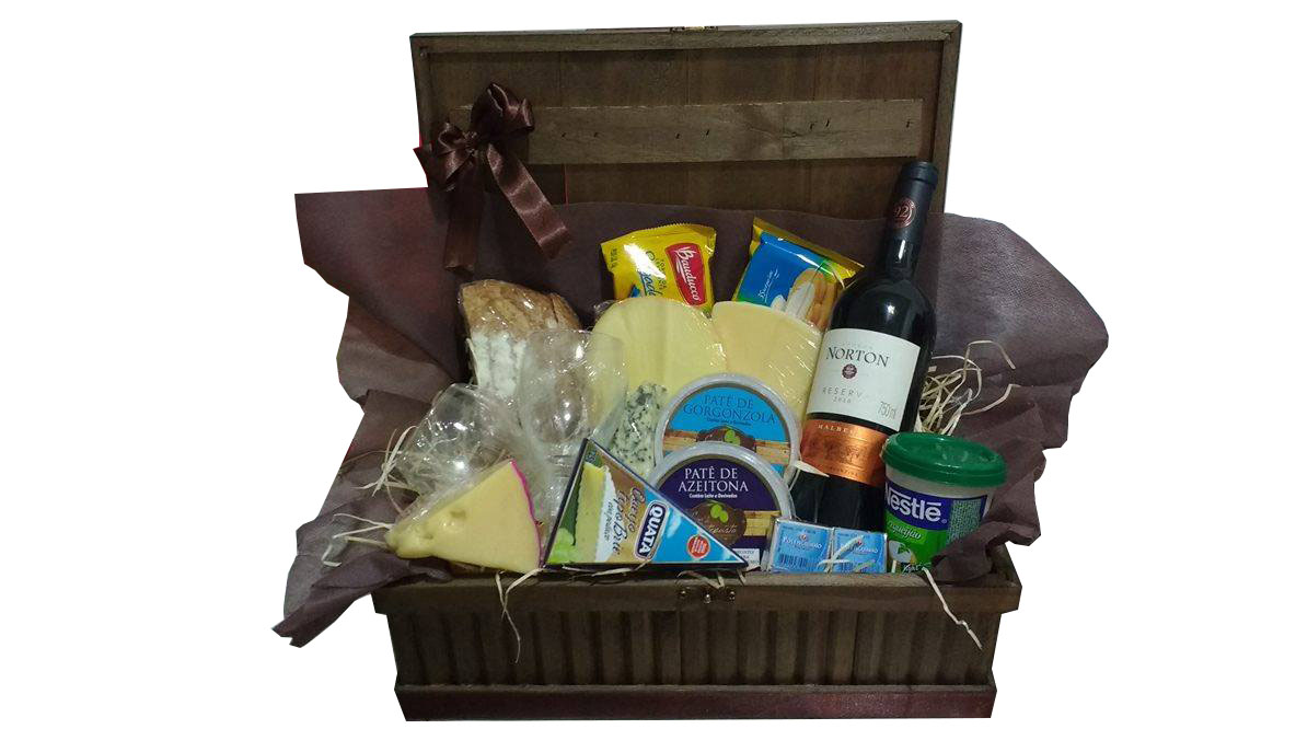 CESTAS DE QUEIJOS E VINHO LUXO COM VINHO RESERVA