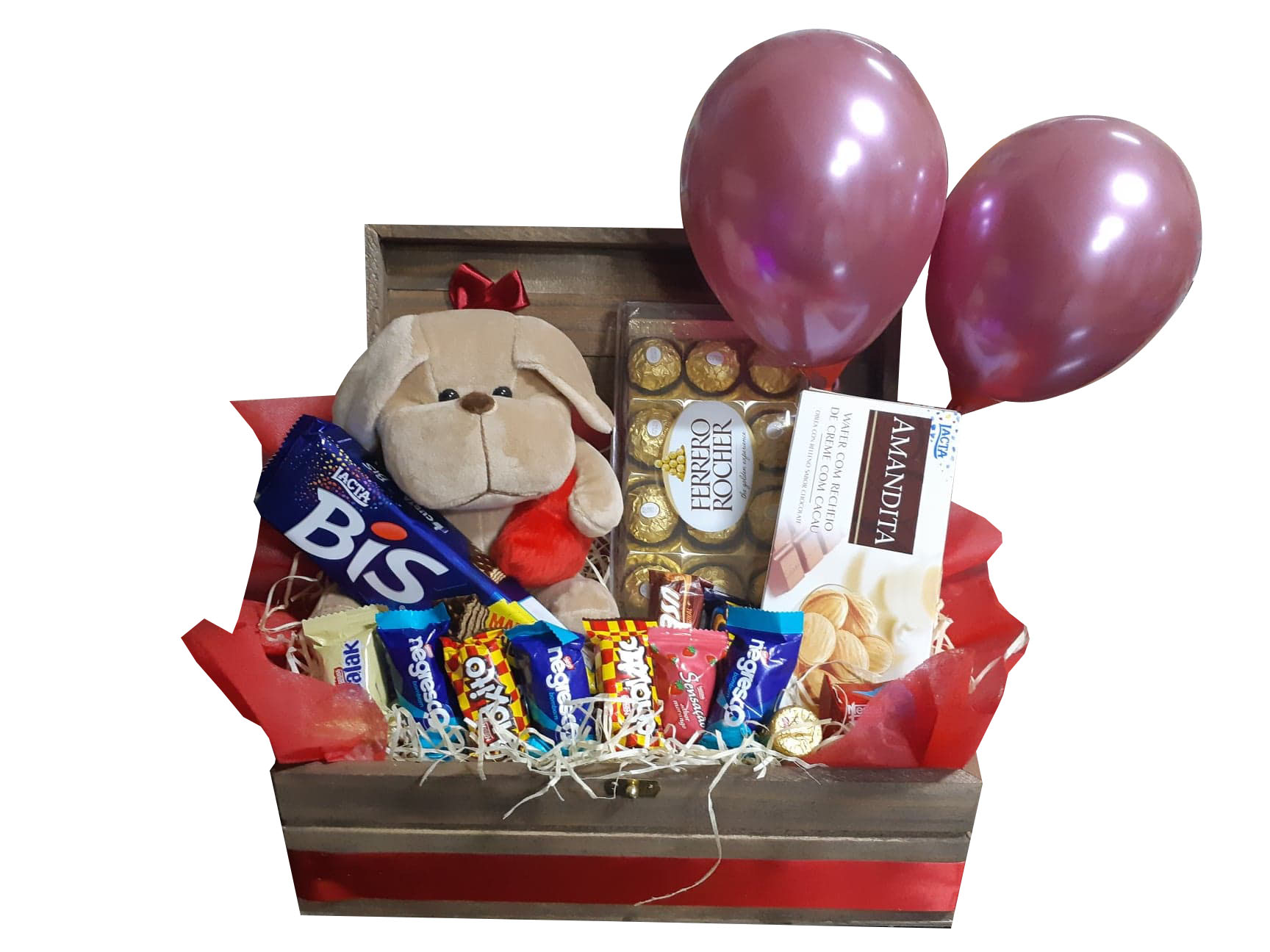 CESTA DE ANIVERSÁRIO LOUCURA, LOUCURA, LOUCURA   CESTA DE CAFÉ DA MANHÃ ADORO VC COM BALÃO BUBBLE PEQUENO