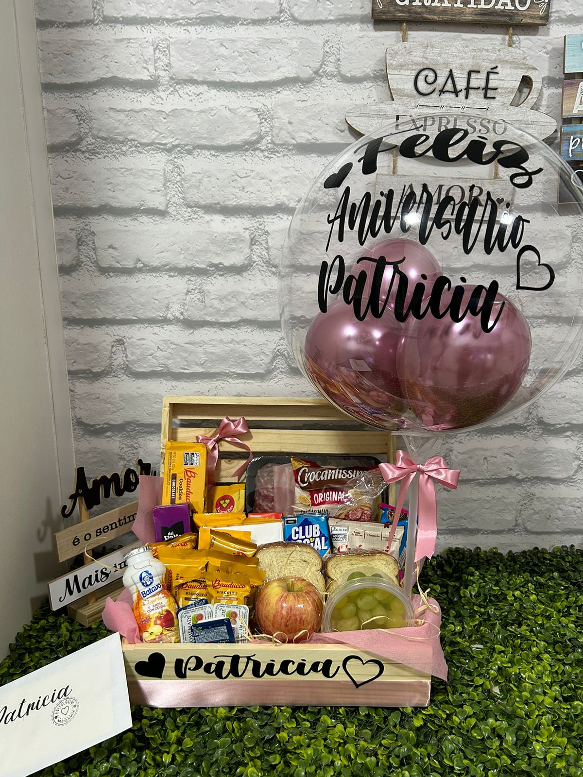 CESTA SEU NIVER COM BALÃO E EMBALAGEM PERSONALIZADOS   CESTA DE ANIVERSÁRIO REGISTRANDO MOMENTOS