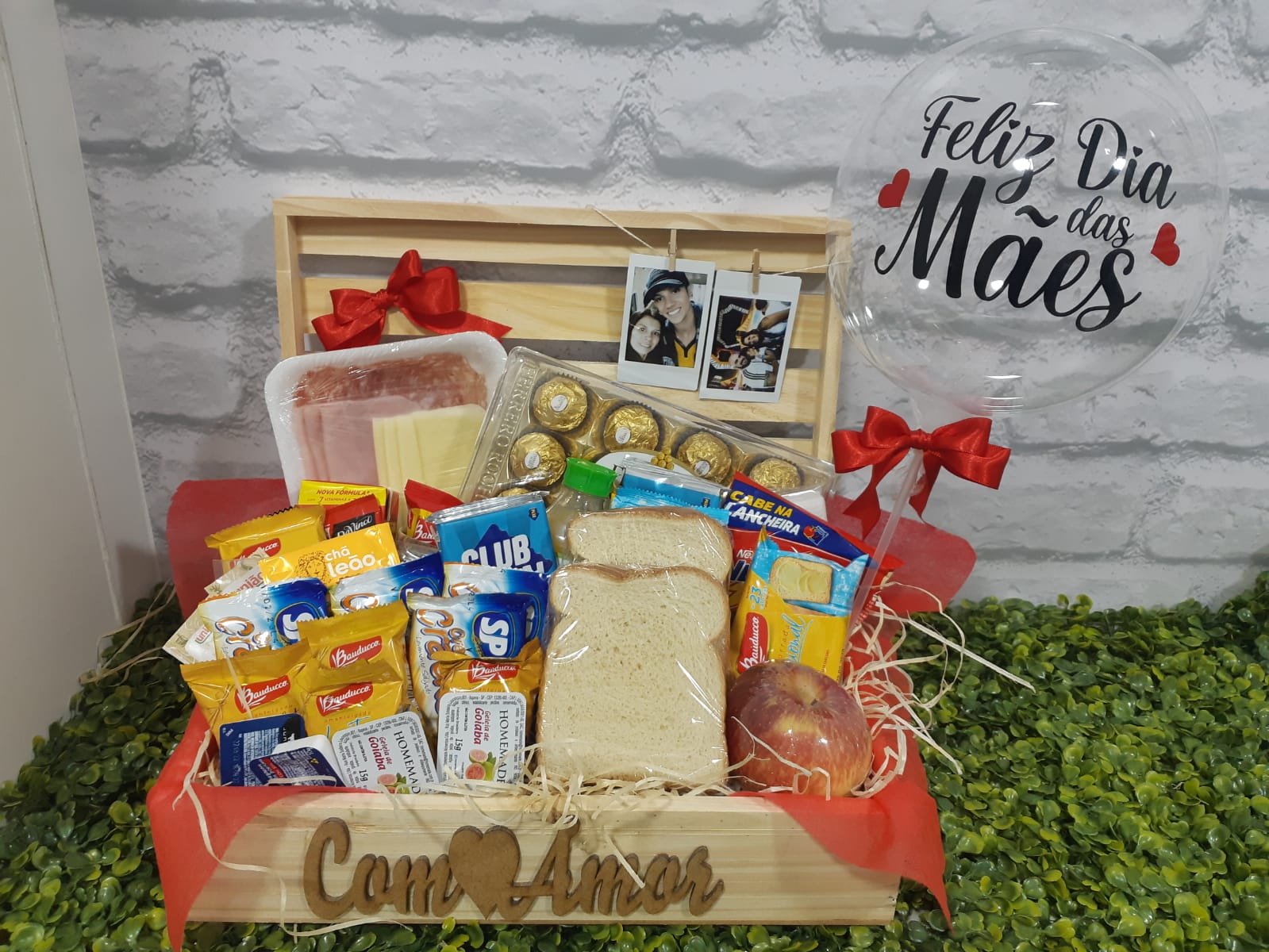 CESTA DE CAFÉ DE DIA DAS MÃES ESQUEMA PREFERIDO   BALÃO BUBBLE MEDIO JUNTOS ATÉ O FIM