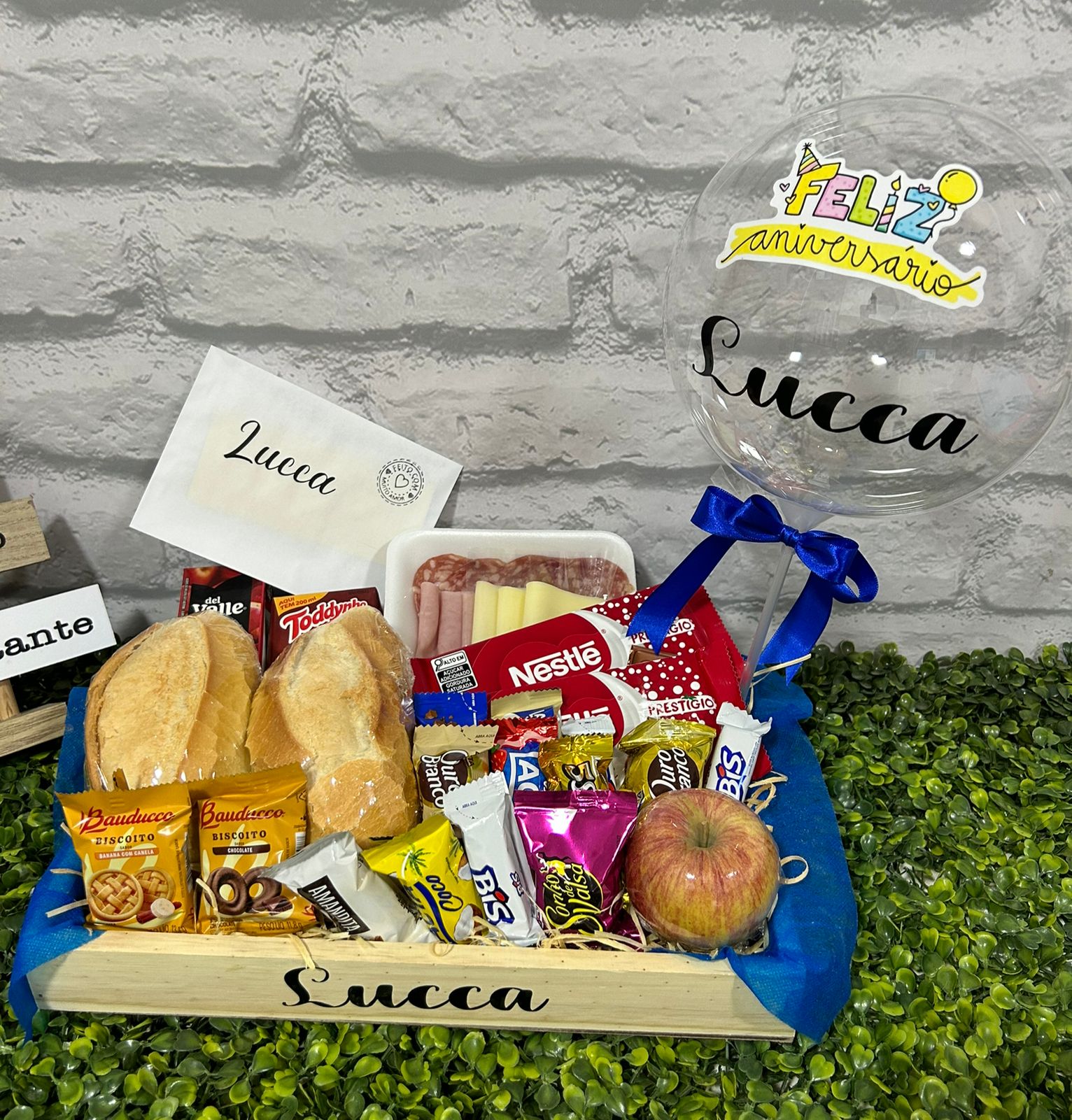 CESTA DE CAFÉ DA MANHÃ HOLANDA COM BALÃO PERSONALIZADO   BALÃO BUBBLE GRANDE PERSONALIZADO